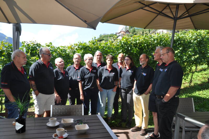 Zur grossen Freude der Dirigentin sprang unser ehemaliges Mitglied Guido Keller kurzfristig für einen erkrankten Kameraden ein und lernte im Expresstempo zwei neue Lieder. Es war toll, ihn wieder in unserer Mitte zu haben.