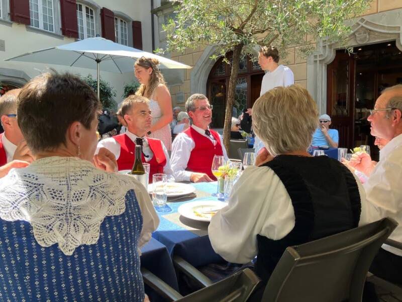 Am 20. August war der Jodelclub zur Hochzeit unserer Dirigentin Luzia Bösch mit Andreas Häberli eingeladen. Nach nur kurzer Probenzeit nach der Sommerpause konnten wir einige Lieder zum Besten geben und der Hochzeitsgesellschaft viel Freude bereiten.