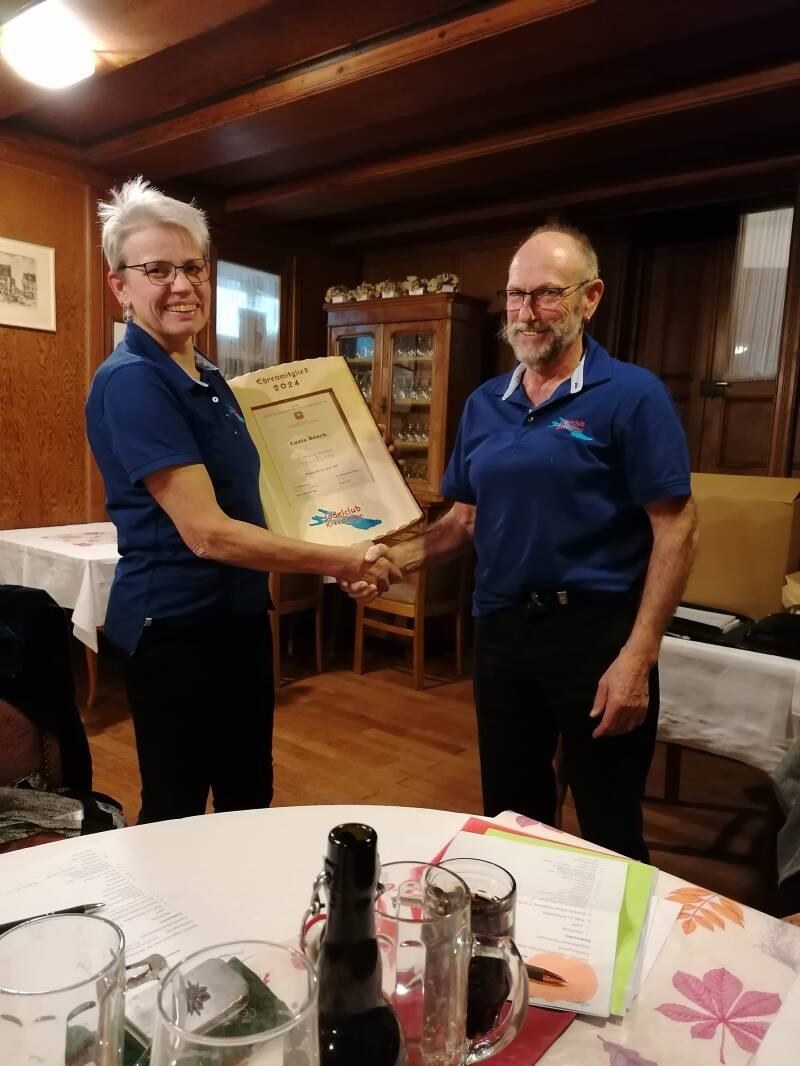 Am Montag den 12. Februar traf sich der Club vollzählig zur Jahresversammlung 2024 in unserem Stammlokal, im Besmer. Nach einem feinen Znacht konnte der Präsident Werner Mazenauer die Traktanden rasch abhandeln. Beim Traktandum "Ehrungen" durfte er 9 von 12 Mitgliedern als Auszeichnung für fleissigen Probenbesuch ein besticktes Badetuch überreichen.