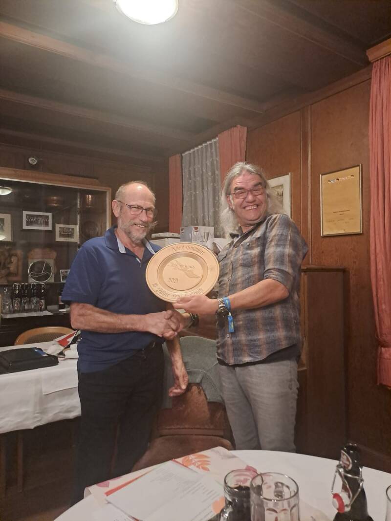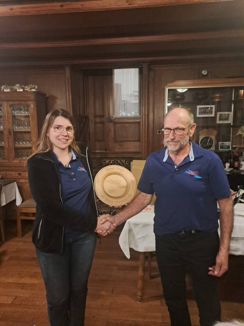 Weil es leider über die Corona-Zeit vergessen ging, wurden Jasmin Bösch und Ruedi Gmünder im Nachhinein für 10 Jahre Vereinstreue mit einem geschnitzten Holzteller geehrt.