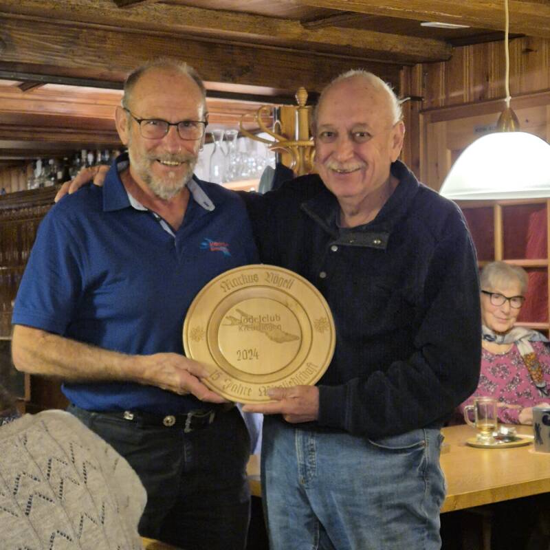 Wir haben dies zum Anlass genommen, um Markus Vögeli für seine 15 Jahre aktives Singen bei uns mit einem geschnitzten Holzteller zu ehren.